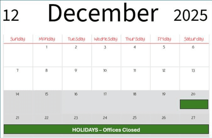- Chancery staff will be paid using “holiday” pay type December 20 – 27 for those who qualify.